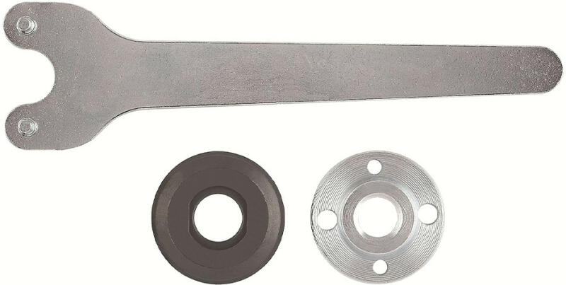 A 3 darabos rögzítőelem-készlet kis méretű sarokcsiszolókkal használható Kerek anyából (1 603 340 015), leszorító anyából (1 605 703 084) és körmöskulcsból (1 607 950 043) áll