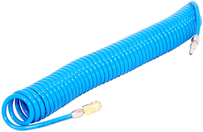 Jellemzők: - Belső átmérő: 8 mm - Külső átmérő. 12 mm - Hosszúság: 12 méter - Levegő nyomás: max. 12 bar - Anyaga: Poliuretán - Színe: Világos kék - Feltekercselt spirál nyugalmi állapotú külső átmérője: 85 mm - Gyárilag feltekercselt spirálok száma: 51 db - Tartozékok: - 1 db szerelt gyorscsatlakozó réz kuplung "anya" - 1 db szerelt gyorscatlakozó réz ellendarab
