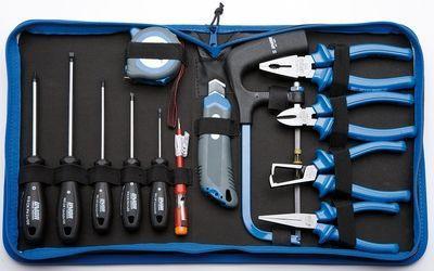 1 db zseblámpa 1 db kombinált fogó 1 db oldalcsípófogó 150 mm 2 db csavarhúzó (PH0, SL3) 1 db mérőszalag 1 m 1 db bittartó 1 db mágneses bittartó 1 adapter 4 db 1/4" dugókulcs 7, 8, 9, 10 mm 10 db bitfej 25 mm