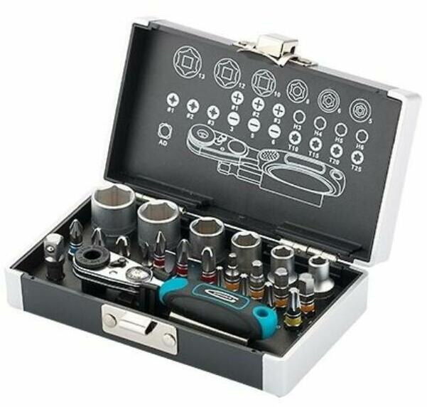 1 db oldaltcsípő fogó 150 mm 1 db állítható csavarkulcs 200 mm 1 db vízpumpa fogó 230 mm 1 db hosszúcsőrű fogó 150 mm 1 db csúszócsuklós fogó 150 mm8 db kombinált csavarkulcs 8-17 mm6 db precíziós csavarhúzó9 db imbuszkulcs 1,5-10 mm24 db bit 1 db bittartó csavarhúzó 1 db bit tartó1 1 db csavarhúzó (-)4x100 mm, 5x75 mm, 6x38 mm 6x100 mm(+)3x75 mm, 5x75 mm 6x38 mm, 6x100
