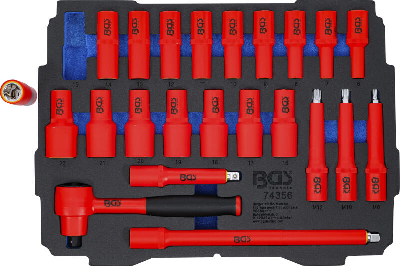 BGS Technic - Germany - ideális szerszámkombináció az elektromos szerelés területén vagy a hibrid és elektromos járművek javítási és karbantartási munkáihoz - szigetelt szerszámokkal felszerelve és a DIN EN/IEC 60900 szabvány szerint tesztelve - VDE szigetelt 1000 V-ig - betét robusztus, kiváló minőségű keményhabból - a szerszámok a kemény habbetétben védve vannak, é