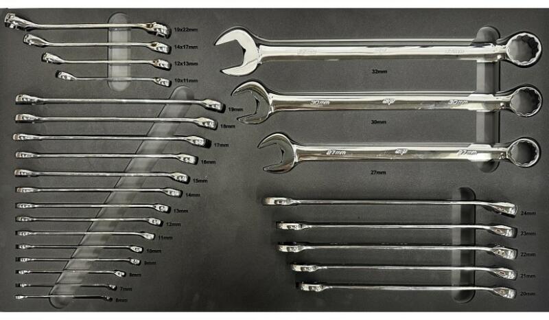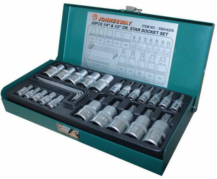 1/4"-os torx dugókulcs fejek: T8, T10, T15, T20, T25, T27, T30; 1/2"-os torx dugókulcs fejek: T40, T45, T50, T55, T60; 1/4"-os e-torx dugókulcs fejek: E4, E5, E6, E7, E8; 1/2"-os e-torx dugókulcs fejek:...