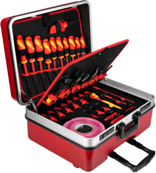 A készlet a következőket tartalmazza: 6 darab szigetelt fogó: 200 mm-es univerzális fogó, 200 mm-es hajlított fogó, 180 mm-es oldalcsípő fogó, 160 mm-es lapos fogó, 250 mm-es csőfogó, 250 mm-es kábelvágó; 1 db szigetelt kábelcsupaszító kés; 7 darab szigetelt csavarhúzó: SL 2,5 x 75 mm, SL 3,0 x 100 mm, SL 3,5 x 100 mm, SL 4 x 100 mm, PH1 x 80 mm, PH2 x 100 mm, PH3 x 150 mm;