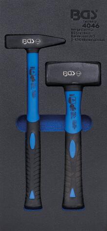 BGS Technic- Germany Szerszámos kocsiba, műhelykocsiba tehető 1/3-os fiókosztású kalapács készlet EVA habszivacs tárolóban szállítva Tulajdonságok: - Kovácsolt, fekete lakkozott fej kivitel - Üvegszálas nyél ergonómikus gumis fogrésszel - 1/3-os fiókosztásba tehető EVA habszivacsú, tálcás kalapács készlet Méret: Szélesség: 189 mm Magasság: 32 mm Mélység: 408 mm Sú