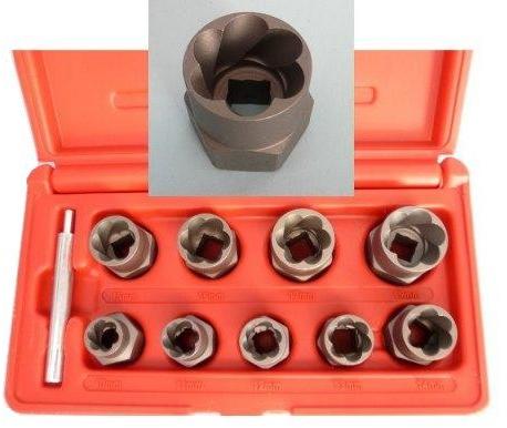 Megkopott, sérült hatlapfejű csavarok, csavaranyák és kerékőrök (17-19 mm) lazítására, kihajtására. A belső spirálhornyok belevágnak a csavarfejbe és megszorulnak, ezáltal az lazítható lesz. Csatlakozás: 3/8" belső négyszög Anyaga: króm-molibdén acélötvözet Alkalmazás: jobbmenetes csavarok és csavaranyák Méretek: 10, 11, 12, 13, 14, 15, 16, 17, 19 mm 1 db kiütő t