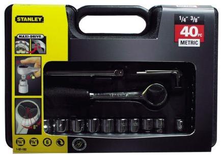 Stanley 40 részes 1/4" és 3/8" metrikus dugókulcskészlet Teljesen polírozott króm felület Kényelmes és tartós recézett markolat Keskeny szabványú króm vanádium kombinált villáskulcsok Dugókulcsok / Racsnis hajtókarok A dugókulcsok 6 pontos illetve 12 pontos kialakítással elérhetőek. A 12 pontos kialakítás biztosabb fogást garantál, ha nehezen hozzáférhető az anya.