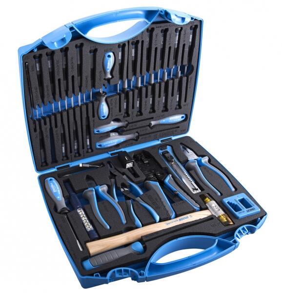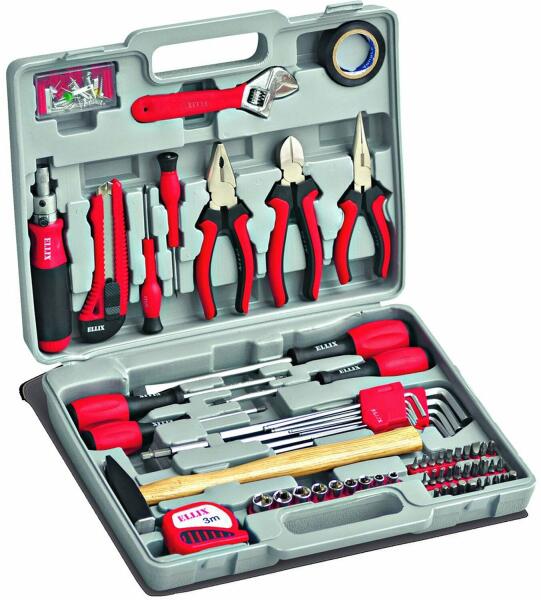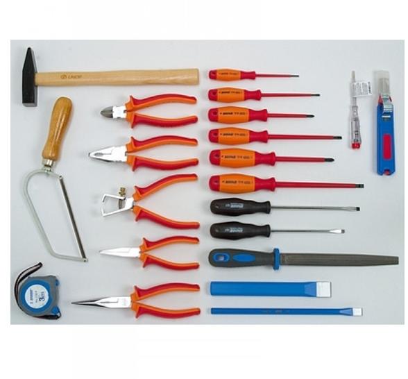 1 db oldalcsípő fogó 150 mm1 db állítható csavarkulcs 200 mm 1 db vízpumpa fogó 250 mm 1 db hosszúcsőrű fogó 150 mm 1 db csúszócsuklós fogó 150 mm9 db kombinált csavarkulcs 8-17 mm6 db precíziós s/d 1.0, 1.4, 1.8, 2.4 mm, #0, #19 db imbuszkulcs 1.5-10 mm24 db Bit 1 db Bittartó csavarhúzó 1 db Bit tartó14 db csavarhúzó(-)3x75 mm, 4x100 mm, 5x75 mm, 6x38 mm, 6x100 mm(+)3x75