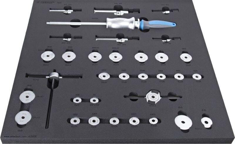 Ez egy automatizált szoftver általi fordítás:Csapágy szerszámtár 2600. A szerelőkészlet orsót tartalmaz két menetes fogantyúval, adapterekkel a standard csapágyakhoz: 608, 1526, 6000, 6001, 6802, 6803, 6804, 6805, 6900, 6901, 6902, 6903, R6, 28x17 (Hope), BB30, Press - FIT szabványok és két különböző méretű műanyag bevonatú adapter a szénfelületek védelméhez csapágyaz