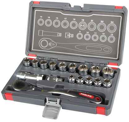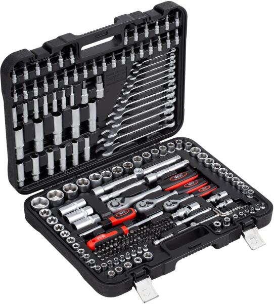 A foglalatkulcs készletben:, , hatszögletű aljzat (1/4 "): 3.5, 4, 4.5, 5, 5.5, 6, 7, 8, 9, 10, 11, 12, 13, 14 mm, hatszögletű aljzat (3/8 "): 10, 11, 12, 13, 14, 15, 16, 17, 18, 19 mm, Hatlapú aljzatok 1/2 ": 10, 11, 12, 13, 14, 15, 17, 19, 20, 21, 22, 24, 27, 30, 32 mm, hatszögletű kiterjesztés: hex, 1/4 ": 4, 5, 6, 7, 8, 9, 10 mm, hatszögletű aljzat 3/8 ": 10, 11, 12, 13, 14, 15 mm,