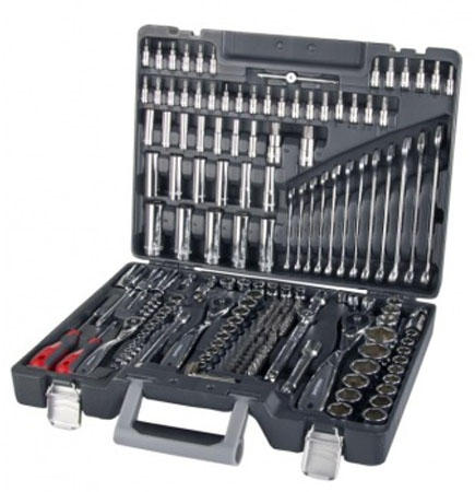 1 db oldaltcsípő fogó 150 mm 1 db állítható csavarkulcs 200 mm 1 db vízpumpa fogó 230 mm 1 db hosszúcsőrű fogó 150 mm 1 db csúszócsuklós fogó 150 mm8 db kombinált csavarkulcs 8-17 mm6 db precíziós csavarhúzó9 db imbuszkulcs 1,5-10 mm24 db bit 1 db bittartó csavarhúzó 1 db bit tartó1 1 db csavarhúzó (-)4x100 mm, 5x75 mm, 6x38 mm 6x100 mm(+)3x75 mm, 5x75 mm 6x38 mm, 6x100