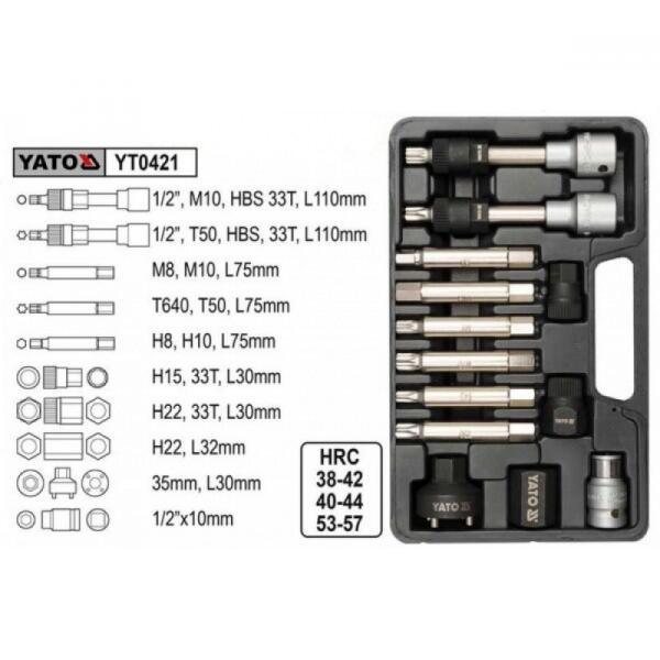 YATO YT-0421 Generátor javító készlet Professzionális kulcskészlet Bosch és Magneti Marelli generátorok be- és leszereléséhez. A következő márkájú autókhoz igazítva: Audi, BMW, Fiat, Ford, Mercedes, Opel, Porsche, Renault, Peugeot, Seat, Skoda, Volvo, VW és mások. A villáskulcsok lehetővé teszik a szíjtárcsát rögzítő csavar egyidejű kicsavarását (megfelelő fúrófe