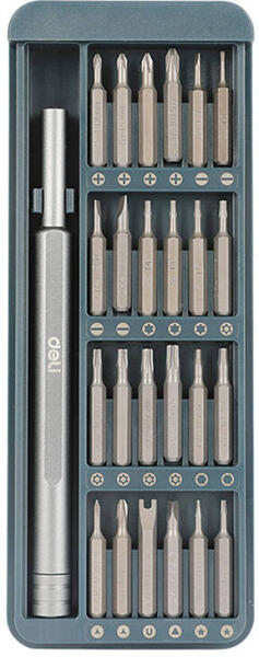 A Deli Tools EDL241025 precíziós csavarhúzó készlet 25 darabos szerszámkészlet, amely ideális a precíziós javítási és szervizmunkákhoz. Kompakt és funkcionális, így tökéletes választás elektronikai eszközök, órák, szemüvegek és akár kis játékok javítására is. A Deli Tools EDL241025 kiváló minőségű kidolgozást és kivételes tartósságot kínál, így elenged