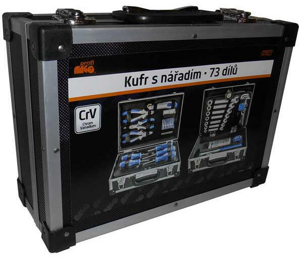 Magg Profi szerszámkészlet szerszám készlet kulcskészlet kofferban 73 db-os JY0073 Csúszásmenetes fogantyúk Anyaga: króm-vanádium A készlet tartalma: -1 db kombinált fogó 150 mm -1 db telefon fogó 150 mm -1 db oldalvágó fogó 150 mm -1 db sniccer pengékkel -6 db lapos mikro csavarhúzó -2 db lapos csavarhúzó -2 db csillag csavarhúzó -1 db bit adapter csavarhúzóval 1/4" -7 d