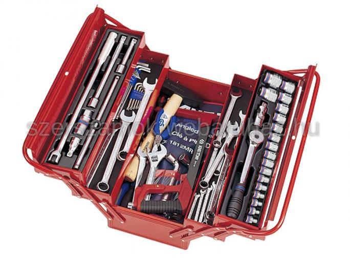 Ingyenes kiszállítással! Csak külön rendelésre! King Tony szerszámos láda adatai Szerszámos láda méretei: hosszúság 470mm, szélesség 220mm, magasság 255mm, súlya: 17,7kg 88db szerszámmal