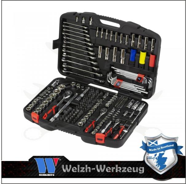 Szerszámkészlet, 218 darabos extra felszereltségű, erős Chrome-Vanádium acélból készült ipari minőségben. A racsnik markolata két komponensű csúszásmentes bevonattal készített Grip markolat. 72 foggal szerelt racsnis meghajtással. Méretek: 1/2" - 3/8" - 1/4" komplett dugókulcs készletek + 12 db-os racsnis csillag-villáskulcs készlet + imbuszkulcsok, torxkulcsok, gépi fejek
