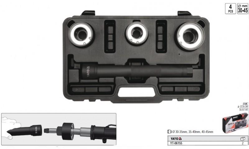 A YATO professzionális kormányösszekötő rúd szerelő készlet 4 szerszáma (egy fogantyú és három cserélhető fej) univerzálisan használható belső gömbcsuklók ki- és beszerelésére. Ezzel a többcélú gömbfej leszedő szerszámkészlettel könnyen kicserélheted a gömbfejet a fogasrúddal kapcsolt kis fogaskerék eltávolítása nélkül. A készlet könnyű kezelhetőségét