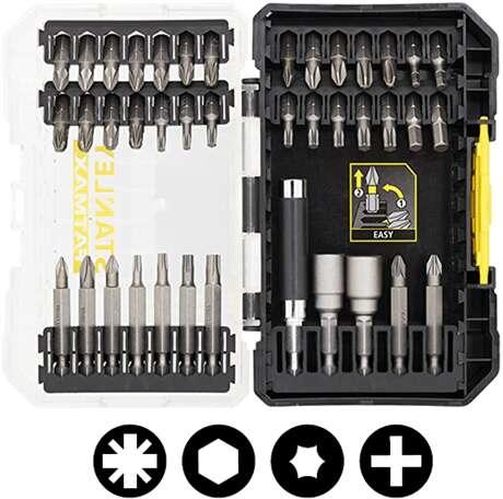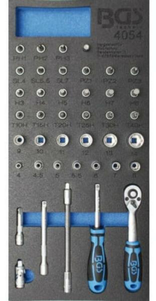 28 db 25 mm csavarbehajtó bit, 1 x Ph1 - 2 x Ph2 - 2 x Ph3 -1 x Hex 3 - Hex 4 - Hex 5 - Hex 6 - 6 x Pz2 - 5 x Pz3 - 2 x T15 - T20 - T25 - T309 db 50 mm csavarbehajtó bit: 1 x Ph1 - 1 x Ph2 - 1 x Pz1 - 2 x Pz2 - 1 x T15 - 1 x T20 - 1 x T25 - 1 x T302 db dugókulcs: 1 x 8 mm - 10 mm1 db csavarmegvezetős bittartó