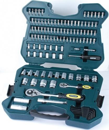 Jellemzők 2 X racsnis hajtókar : 6,3mm (1/4") 12,5mm (1/2") 28 X dugókulcs CV 13 X 6,3 mm (1/4") méretek: 4-4,5-5-5,5-6-7-8-9-10-11-12-13-14m 15 X 12,5 mm (1/2") méretek:10-11-12-13-14-15-16-17-18-19-2 0-21-22-23-24mm 2 X gyertyakulcs (1/2") 16+21mm 1 X csavarhúzó adapter (1/4") 71 X bit cv 25 mm 5 X PH1 -5 X PH2 - 5XPH3 - 5 X PZ1 - 5 X PZ2 - 5 X PZ3 15 X lapos 2x3 mm - 3x4mm - 3x5mm - 3x5