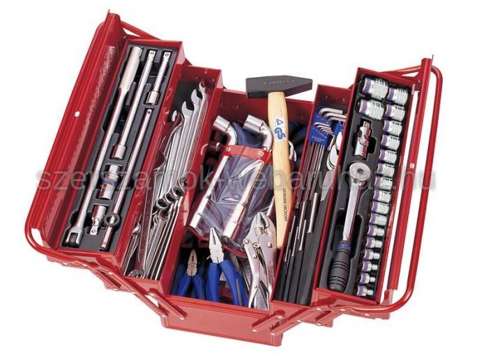 Ingyenes kiszállítással! King Tony szerszámos láda adatai A szerszámosláda méretei: hosszúság 470mm, szélesség 220mm, magasság 255mm 102db szerszámmal ( 10db szerszámkészlet és 10db szerszám) King Tony fém szerszámláda tartalma A fém szerszámosláda 1060 csillag-villáskulcsok: 8 9 10 11 12 13 14 15 16 17 18 19 21 22 23 24 27 30 32 1120M imbuszkulcsok: 1,5 2 2,5 3 4 5 6 8 10