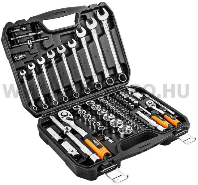 A termékhez tartozó katalógus oldal megtekintéséhez KATTINTSON IDE . A termék adatai a grupatopex. com oldalon IDE KATTINTVA érhető el. Garancia: 25 év. Dugókulcs készlet, ¼"-os és ½"-os, 82 db-os, CrV acél, 12 db ½"-os hatlapú dugókulcs: 14 mm, 15 mm, 16 mm, 17 mm, 18 mm, 19 mm, 20 mm, 22 mm, 24 mm, 27 mm, 30 mm, 32 mm, 1 db ½"-os, 1 fogas racsnis hajtókar, 1 db ½"-os univerz