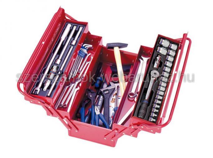 Ingyenes kiszállítással! King Tony szerszámos láda adatai A szerszámosláda méretei: hosszúság 470mm, szélesség 220mm, magasság 255mm 68db szerszámmal ( 2db szerszámkészlet és 42db szerszám) Súly: 15,9 kg King Tony fém szerszámláda tartalma A fém szerszámosláda 14db 1060 csillag-villá