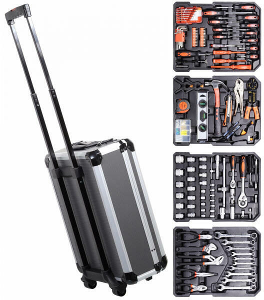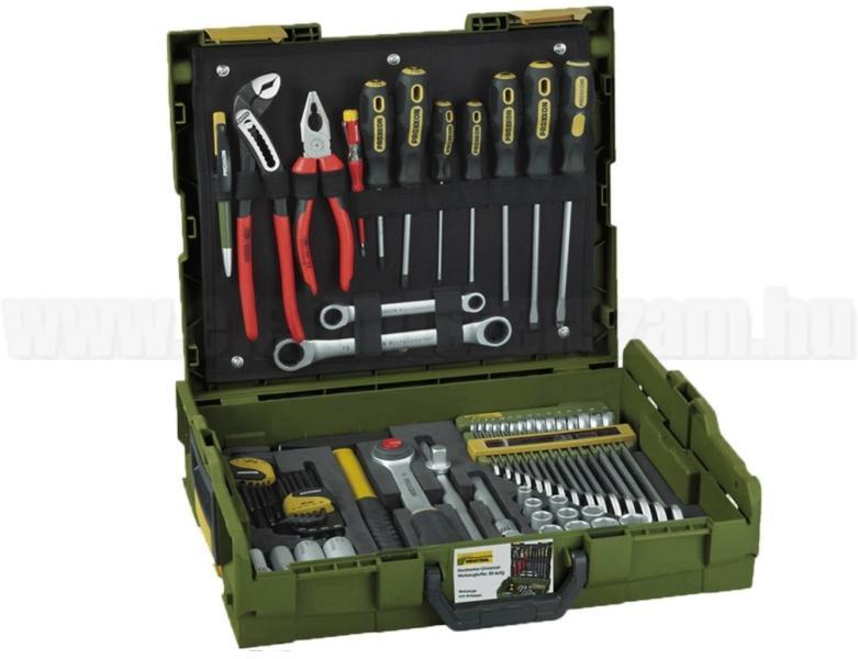 Ez a professzionális szerszámkészletet mindenféle javítási munkákhoz kiváló társad lesz. Ezzel a 257 részből álló szerszámkészlettel, mindig a kezed ügyében lesz minden, a javításhoz szükséges eszköz. A készletben lévő eszközök kiváló minőségű króm-vanádium-acélból készültek. A szerszámok erős műanyag dobozban állnak rendelkezésedre mely fém kapcsokkal