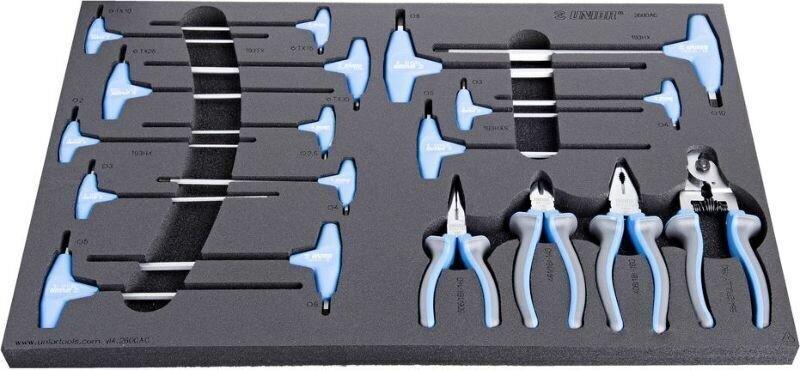 Ez egy automatizált szoftver általi fordítás:Szerszámkészlet a kerékpár karbantartásához SOS betétben. A szerszámválasztás most hét különálló, kiváló minőségű habból készült betétben érhető el (az 1600SOS13-tól az 1600SOS19-ig), ahol minden szerszámnak megvan a maga helye. A habbetétek alkalmasak az Europlus, az Eurovision, az Eurostyle és a Hercules kocsikra. N f