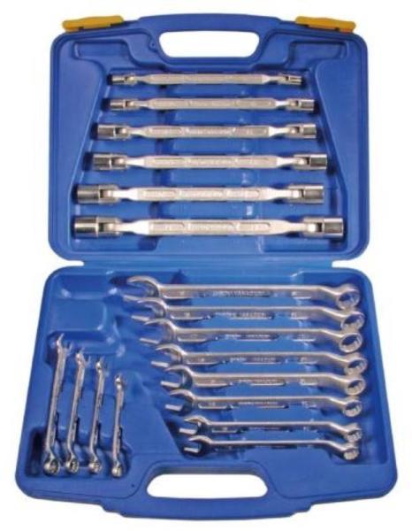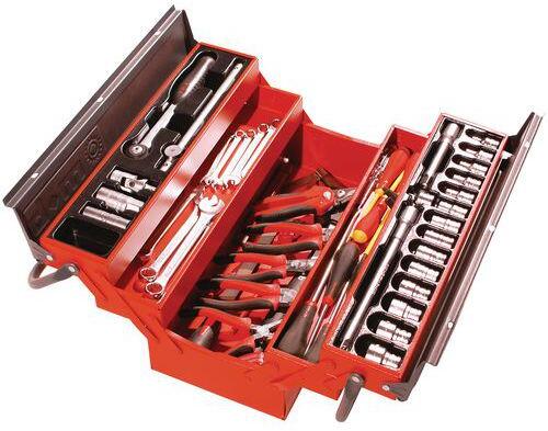 karbantartó szerszámos doboz tartalma: tartozékok 1/2": – 1 tenyérkilincs; – 1 univerzális csukló; – 1 csúszó fogantyú 255 mm; – 14 hatszögletű foglalat 8 – 9 – 1 – 11 – 12 – 13 – 14 – 15 – 16 – 17 – 19 – 21 – 24 mm – 2 foglalat 16 és 21 mm-es gyújtógyertyákhoz – 2 db 125 és 25 mm-es toldó – 11 – 12 – 13 – 14 – 16 – 17 – 18; – 19