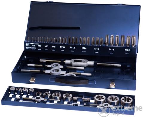 Z-TOOLS Menetszerszám készlet 54 részes HSS M3-M20 ZC167 az iSzerszámnál. Z-TOOLS Menetszerszám készlet 54 részes HSS M3-M20 ZC167. Menetmetszők (DIN EN 22568): M3; M4; M5; M6; M8; M10; M12; M14; M16, M18; M20 . Kézi menetfúrók (DIN 352) (3r. ): M3; M4; M5; M6; M8; M10; M12; M14; M16, M18; M20 . Menetmetsző hajtóvas (DIN 225): 6db . Menetfúró hajtóvas (DIN 1814): 2db . Csavarhúz