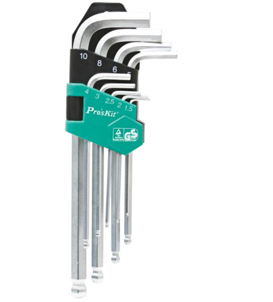 A tökéletes imbuszkulcskészletet keresi hobbi vagy szakmai felhasználáshoz? A Pro'skit HW-229B imbuszkulcskészlet pont az, amire szüksége van. Ez a 9 darabos készlet minden méretet tartalmaz, amire csak szüksége lehet, az 1,5-ös mérettől egészen a 10-es méretig, így biztosítva, hogy mindig kéznél legyen a megfelelő eszköz. A kulcsok egyik végén található gömbfej lehető