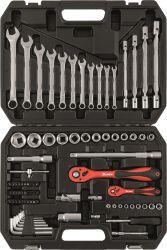 készlet elemei 89 dbanyag: CrV acélszín: piros-feketedoboz műanyagtartalmaz: Racsnis hajtószár 1/4", 72 fog Racsnis 1/2", 72 fog, Csavarhúzó tartó 1/4"-os bitekhezKombinált csavarkulcsok készlete: 7-19 mmCsuklós csavarkulcsok készlete: 8-15 mmHatszögletű csavarkulcsok készlete: 2-10 mmHosszabbítók: 100, 125, 250 mmKardántengely: 1/4", 1/2"1/4"Bitfejek: 4, 5, 6, 7, 8, 9, 10, 11,