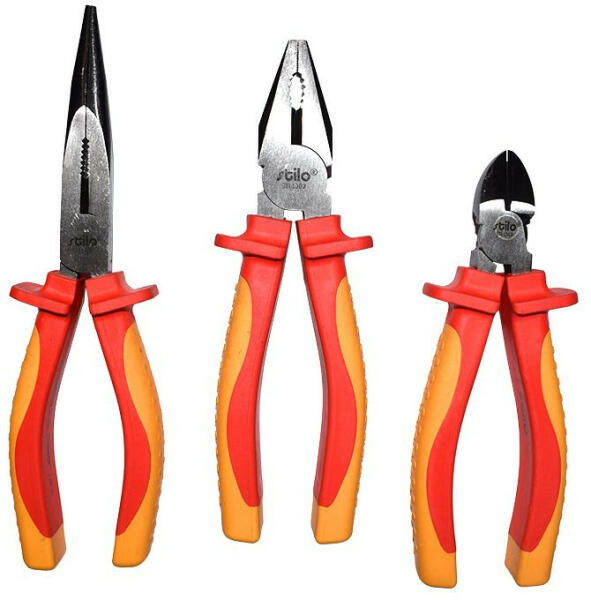 VDE szerszámszett 3db 1000V: oldalcsípő fogó 165mm, kombinált fogó 185mm, laposcsőrű fogó 200mm, STI1678 Stilo
