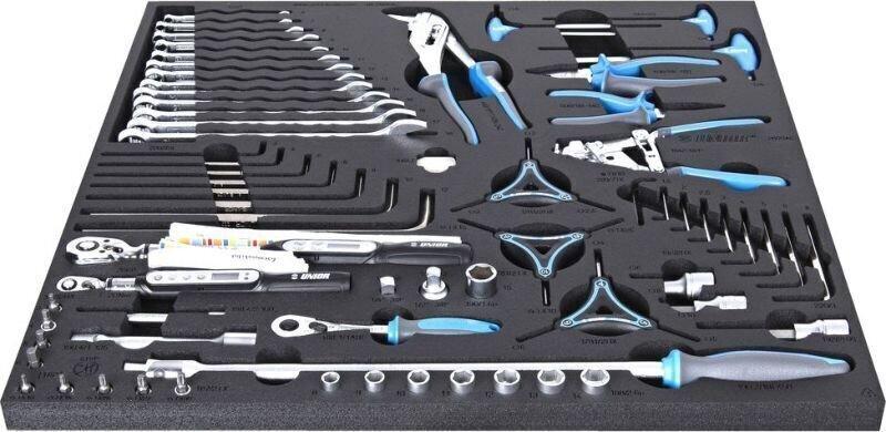 1 db oldalcsípő fogó 150 mm1 db állítható csavarkulcs 200 mm 1 db vízpumpa fogó 250 mm 1 db hosszúcsőrű fogó 150 mm 1 db csúszócsuklós fogó 150 mm9 db kombinált csavarkulcs 8-17 mm6 db precíziós s/d 1.0, 1.4, 1.8, 2.4 mm, #0, #19 db imbuszkulcs 1.5-10 mm24 db Bit 1 db Bittartó csavarhúzó 1 db Bit tartó14 db csavarhúzó(-)3x75 mm, 4x100 mm, 5x75 mm, 6x38 mm, 6x100 mm(+)3x75
