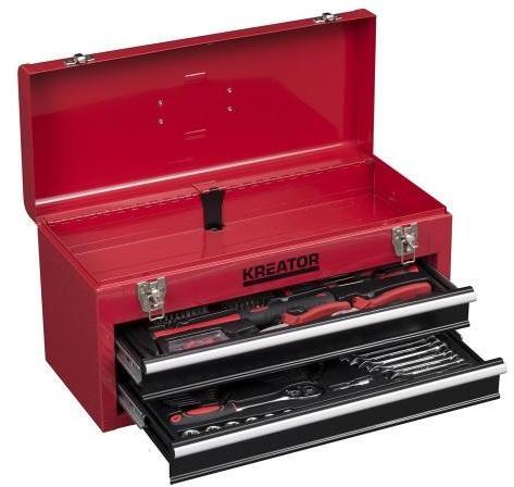 Fém 2 fiókos szerszámosláda. - 158 részes - 1 db Hosszúcsőrű fogó - 1 db oldalcsipő fogó - 7 db csillag-villás kulcs (8,9, 10,11, 12,13, 14mm) - 1 db 200g kalapács - 8 db-os imbuszkulcs készlet (1.5-6mm) - 7 db-os Torx készlet (T10-T40) - 35 db csavar és tipli - 9 db fúrószár - 1 db bittartó - 50 db csavarhúzó bitfej - 6 db műszerész csavarhúzó - 1 db 1/4 racsnis hajtósz