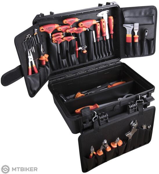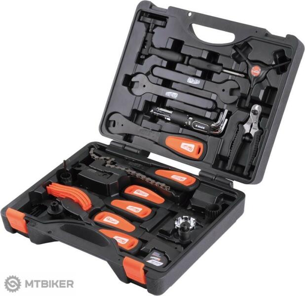 Super B TBA800 szerszámkészlet A készlet legfeljebb 29 darab szerszámot tartalmaz, amelyeket minden profi szervizes biztosan használni fog, minden otthoni cyclo barkácsoló rendelkezésére áll. Az eszközkészlet a következőket tartalmazza: 1 láncszegecselő 1 Phillips csavarhúzó 1 db "Y" torx kulcs T25/T30/T40 1 fogó bowdenekhez és kábelekhez 4 kúpos kulcs, 13/14/15/17 mm 8 imbus