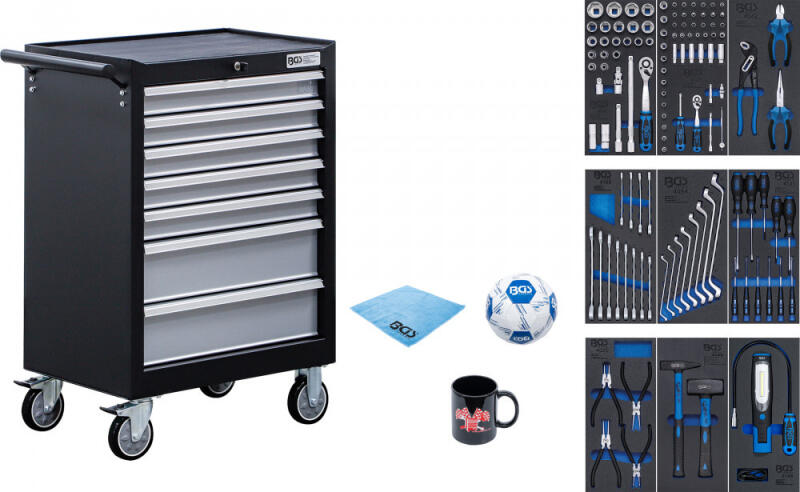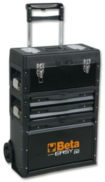 Beta Beta 4300E/21 3 modulos szerszámkocsi 212 darabos szerszámkészlettel általános karbantartáshoz Jellemzők: 3Lemezből készült fémváz, műanyag borítás 3 leválasztható modul 1 felső szerszámosláda, magasság: 222 mm 1 középső modul, magasság: 168 mm, 2 fiók, 60 mm 1 kerekes alsó modul, magasság: 332 mm, 280 mm felnyíló ajtó Nagy átmérőjű kerekek (ø 128 mm) 4 poz