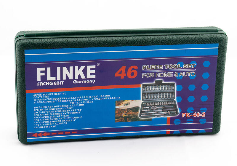 Praktikus tárolódobozban, hogy mindig rendszerezve tarthasd a szerszámokat Erős króm-vanádium acélből készült szerszámok, amíg szinte mindent kibírnak A csomag tartalma: 1 db átkapcsolható racsni 13 db dugókulcs betét (4/ 4,5/ 5/ 5,5/ 6/ 7/ 8/ 9/ 10/ 11/ 12/ 13 és 14 mm) 1 db kardáncsukló 1 db kihúzható hajtószár 1 db csavarhúzó markolat 2 db hosszabbító (50 és 100 mm)