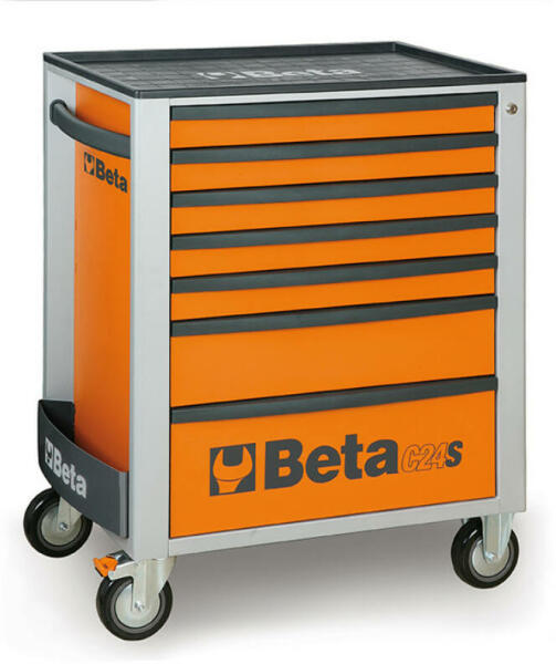 7 fiókos szerszámkocsi, 309 darabos szerszámkészlettel Hét teleszkópos, csapágyazott fiók 588x367 mm: 5 fiók 70 mm magassággal 1 fiók 140 mm magassággal 1 fiók 210 mm magassággal A fiókok habgumi védőszőnyeggel béleltek. Négy darab Ø 125 mm kerék: 2 rögzített és 2 elforduló (egyiken fékkel). Központi zár elől, biztonsági zárral. Statikus teherbírás: 800 kg. Beép
