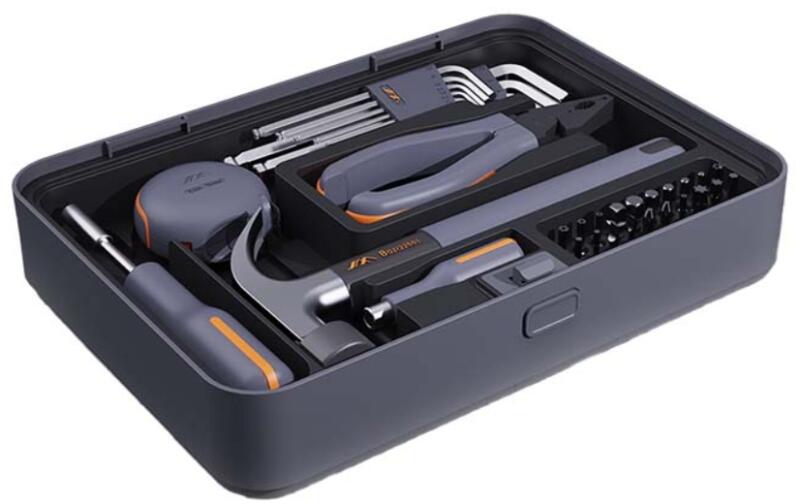 JIMI Home X1-A szerszámkészlet, dobozban A praktikus dobozba zárt JIMI Home szerszámokat úgy válogattuk össze, hogy megfeleljenek a legalapvetőbb otthoni javítások és munkák igényeinek. Belsejében talál: 3,5 m-es mérőszalagot, fogót, kalapácsot, imbuszkulcs-készletet és egy kis és egy nagy nyelű csavarhúzót, valamint 20 különböző bitet. A kisebb otthoni javítások tö