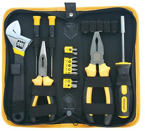 Termékleírás: Strend Pro 21 részes szerszámkészlet A készlet tartalma: - 1x franciakulcs 200 mm - 1x hosszú orrfogó 150 mm - 1x kombinációs fogó 180 mm - 1x mini csavarhúzó (PLO) 2,4x40 mm - 1x mini csavarhúzó (PH) 00x40 mm - 1x csavarhúzó 10x bittel - 5x 25 mm dugókulcs Vászon tartóban