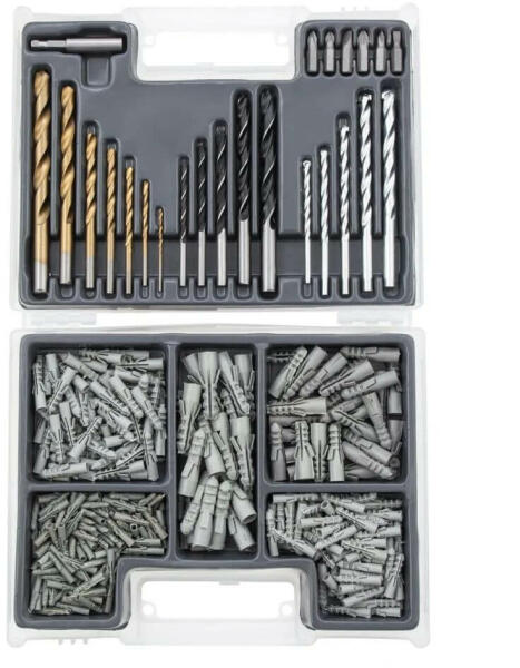 végfejek anyaga: szénacél fúróméret betonhoz: 4 x 75, 5 x 85, 6 x 100, 8 x 120, 10 x 120 mm fúróméret fához: 4 x 75, 5 x 85, 85, 85, 6 x 95, 8 x 114, 10 x 120 mm fúróméret fémhez: 2 x 47, 3 x 60, 4 x 75, 5 x 85, 6 x 94, 8 x 115, 10 x 131 mm aljzat, adapter méretei: 1/4" x 60 mm szár típus: hengeres darabszám: 300db fém fúró anyag: titán-nitrid bevonat fa fúró anyag: szénac