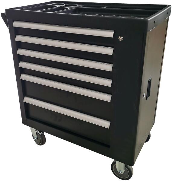 Cromwell Tools 6 fiókos szerszámosszekrény 124 db-os szerszámkészlettel. 4 db kisméretű fiók: 525 x 395 x 53 mm, terhelhetőség 25 kg / fiók 2 db nagyméretű fiók: 525 x 395 x 133 mm, terhelhetőség 35 kg / fiók 2 db fix és 2 db forgófékes kerék Összeállítás: - 1/4" dugókulcsok: 4,4. 5,5, 5.5, 6-14mm - 1/4" hosszabbítók: 50 és 100mm - 1/4" T-hajtószár 115mm - 1/4" behaj