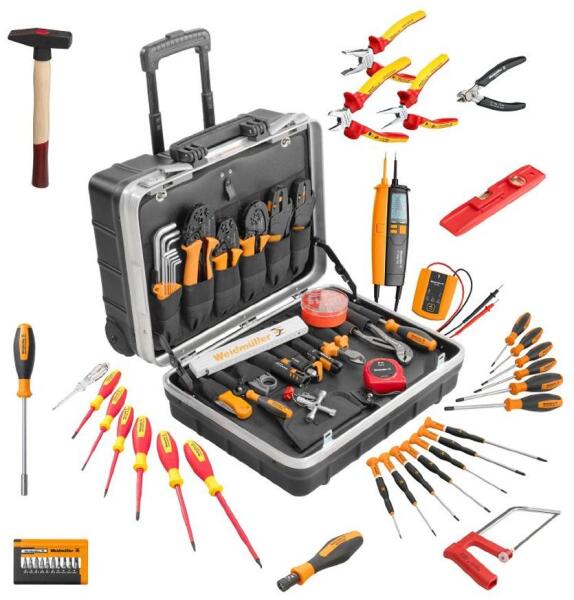WEIDMÜLLER TOP CASE ULTIMATE PLUS Szerszámcsomag bőrönddel (2903600000) Kés zlet tartalma: 1db TOP CASE Bőrönd 564x352x255 mm - 1345330000 1db STRIPAX Csupaszoló és vágószerszám PVC szigetelésű hajlékony vezetőhöz 0,08…10mm2 - 9005000000 1db KBZ 180 1000V-os szigetelt kombinált fogó - 9046290000 1db KT 8 Vágószerszám réz-és alumíniumvezetékek lapításmentes vágására