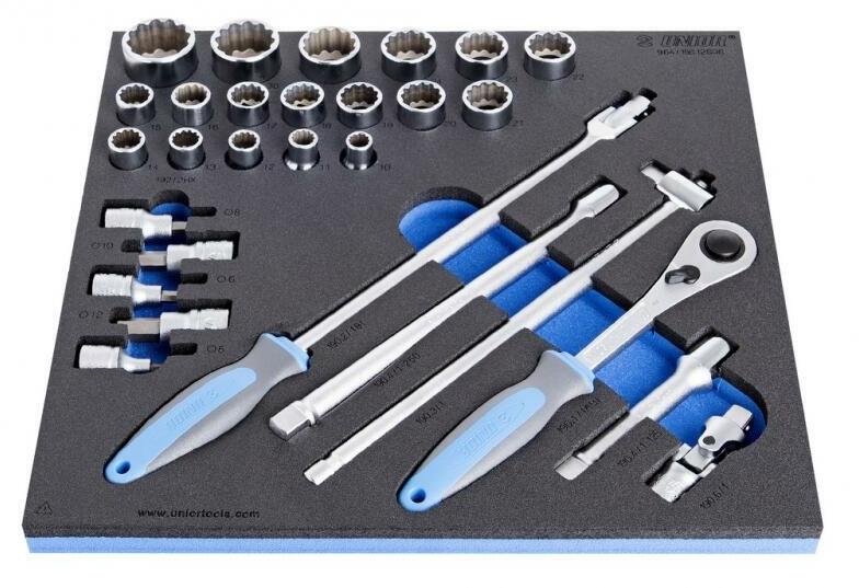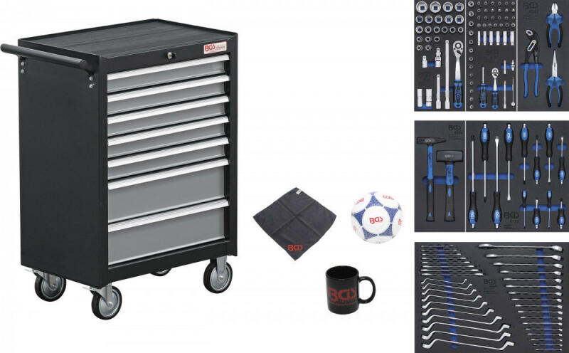 Az alábbiakat tartalmazza: műhelykocsi BGS 2001 és 4 műhelykocsi-betét 1/3 (méretek: 189 x 408 x 32 mm) 1 műhelykocsi-betét 2/3 (méretek: 378 x 408 x 32 mm) 1 műhelykocsi-betét 3/3 (méretek: 567 x 408 x 32 mm) robusztus, kiváló minőségű keményhabból Dugókulcskészlet, hatszögletű, 12,5 mm (1/2), 27 darabos (BGS 4126) Dugókulcskészlet, hatszögletű, 6,3 mm (1/4), 50 darabos