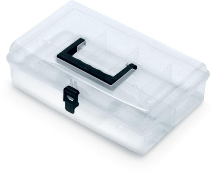 Kompakt tárolódoboz mely ideális többféle hobby kellék tárolására. Átlátszó külső borítás, könnyű hordozhatóság. Súlya: 0,5 kg