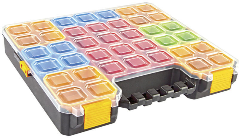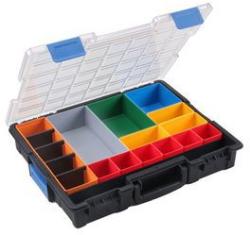 Műanyag rendszerező doboz csavarok, csavaranyák, alátétek és más kisebb anyagok tárolására. A fedél bezárásával az egyes rekeszek is bezáródnak, így biztosított, hogy az elemek nem keverednek össze. Praktikus fogantyú, átlátszó fedél a tartalom gyors ellenőrzése érdekében. Akár 3 rendszerező is egybekapcsolható az oldalcsiptetőkkel, max. 36 kg. Kompatibilis az Europ