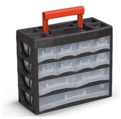 NUF3HT 5905197093505 RENDSZEREZŐ Szervező Műanyag doboz Átlátszó rendszerező, fogantyúval rendelkezik. Kis méretű tárgyak tárolására használható, mint pl. gombok, anyák, csavarok, szerszámok. Belsejében egy tálca könnyíti az apró darabok szétválogatását. Csattal zárható a fedele. Cikkszám (SKU): 813693 EAN kód: 5905197093505