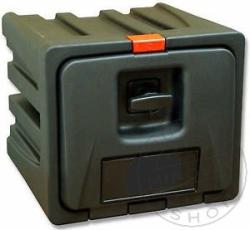 Műanyag, zárható szerszámos láda. Méretei: -Szélesség: 400 mm -Magasság: 350 mm -Mélység: 400 mm Erősített falú!