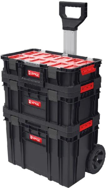 Külső méretek530 [L] x 385 [W] x 690 [H] mmBelső méretek389 [L] x 228 [W] x 307 [H] mmÁtlós méret585 mmTérfogat38 lTároló rekeszek száma24Moduláris eszköztár, amely egy mobil alap személyre szabott KÉT készlet összeállításához. Masszív teleszkópos fogantyú, fém tengely, nagy gumibevonatú kerekek garantálják a tartósságot és a kiváló manőverezhetőséget. A doboz