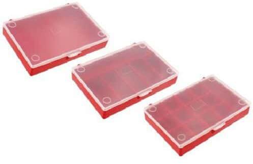 3 tárolódoboz kis alkatrészek tárolására, 3 féle osztással (HxSzxM): 165 x 110 x 28 mm (dobozonként).
